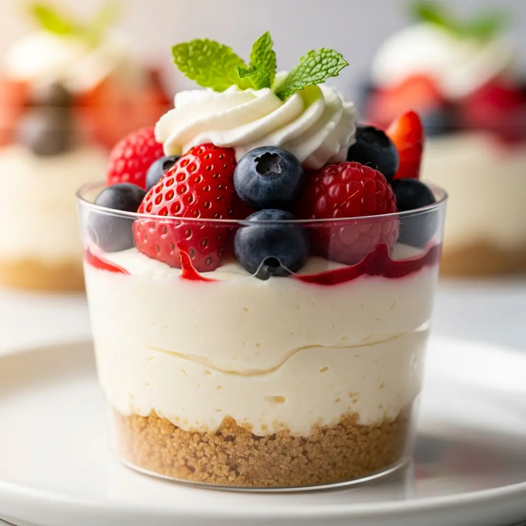 Easy No-Bake Cheesecake Cups: Creamy Dessert Delight with fresh berries